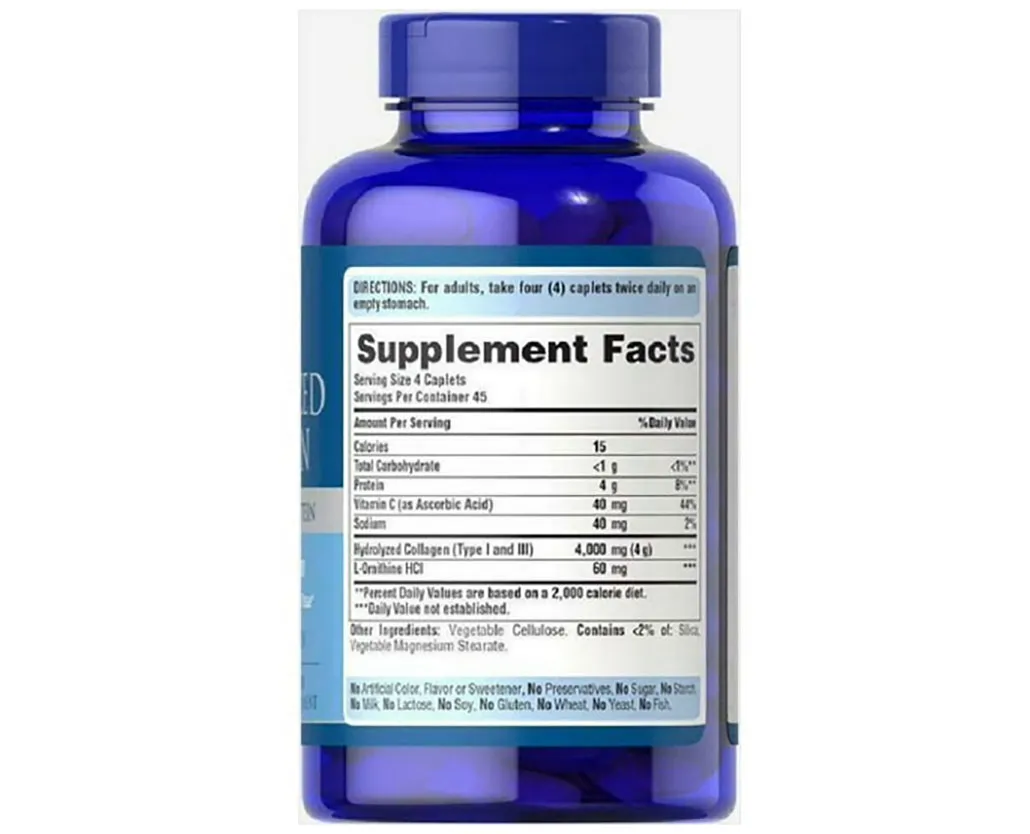 Colágeno Hidrolisado Puritan's Pride® Collagen Hydrolyzed 4000mg Type 1&3 180 Caplets Importado + Frete Grátis