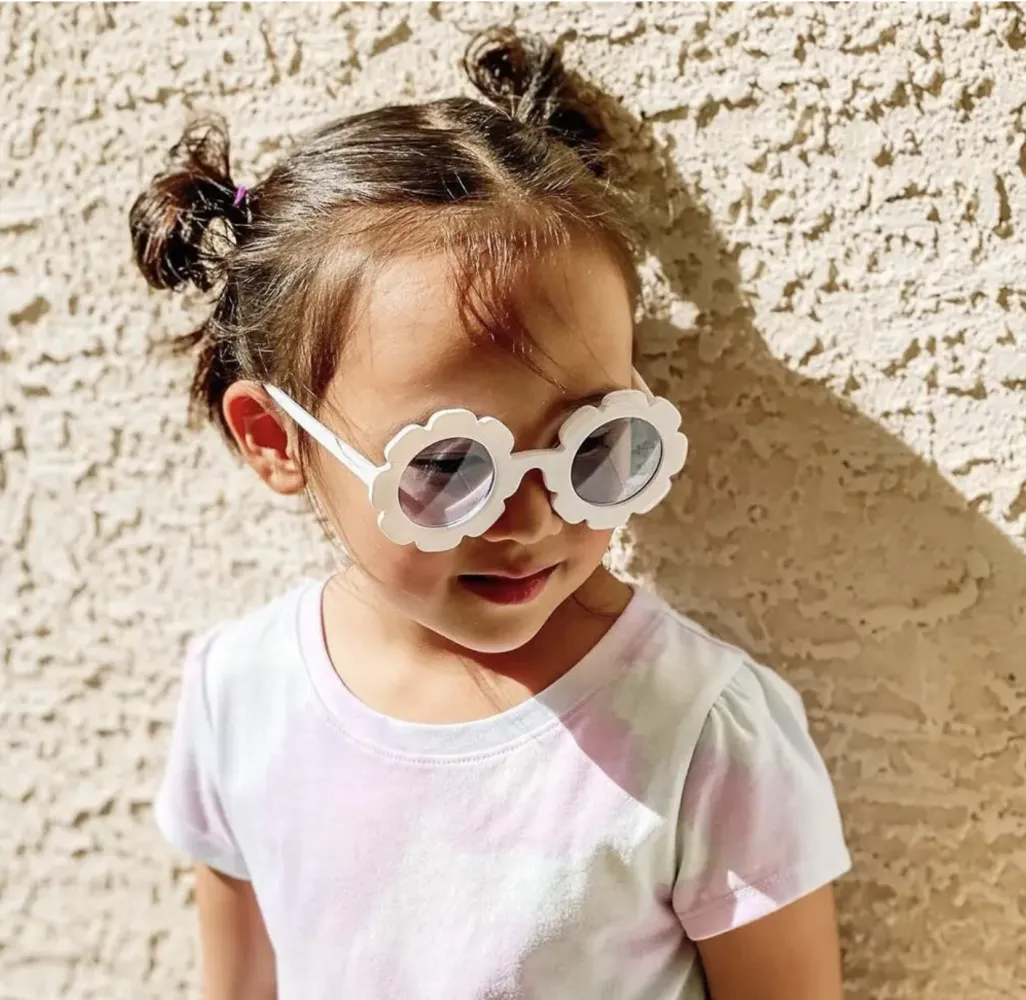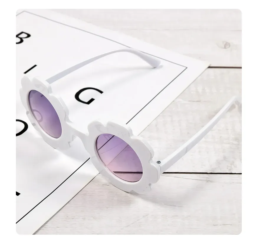 Lindo e charmoso Óculos de sol infantil Flor, design redondo para meninas glamourosas e estilosas.