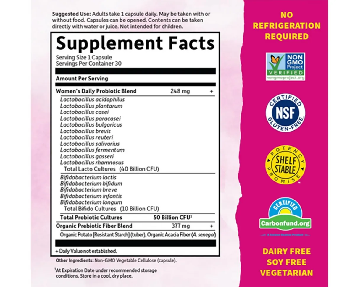 Probiótico Garden Of Life 50 Bilhões Women Vegetariano 15cepas C/30Caps